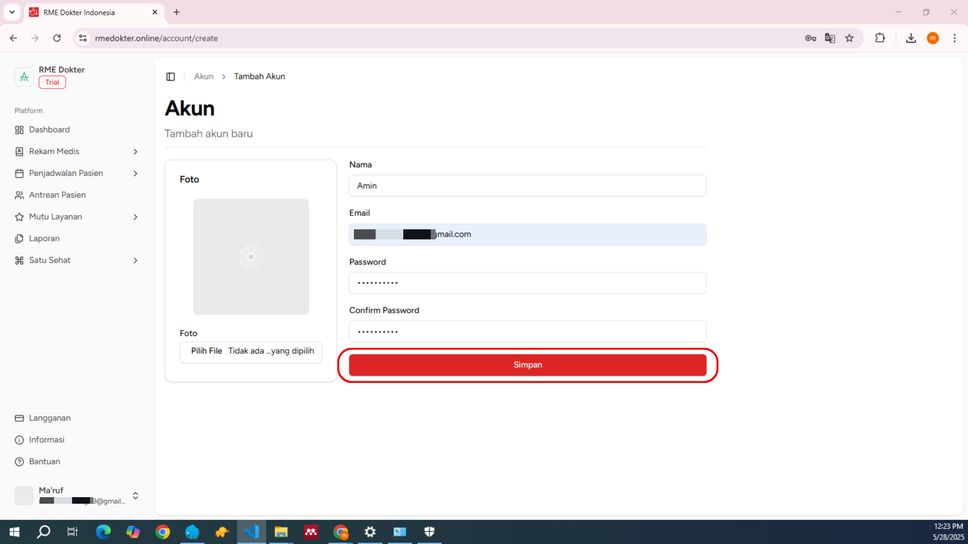 Setelah semua data diisi, klik tombol Simpan untuk menyimpan akun baru.