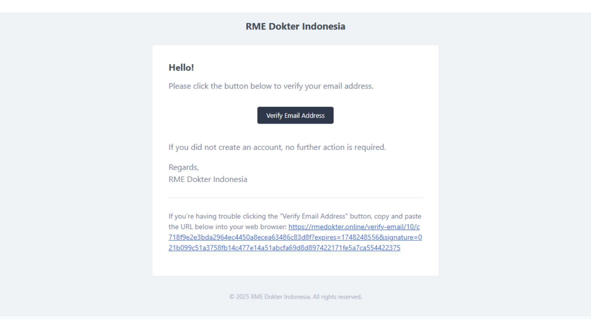 Verifikasi akun baru Anda dengan membuka email yang telah didaftarkan, kemudian klik tombol *Verify Email Address* untuk mengaktifkan akun.